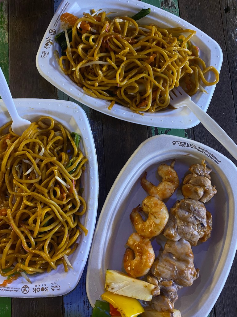 Wir sind ready, wollen los und laufen Richtung dem Restaurant von Jay Fai, die macht aber Urlaub, genau dann wenn wir in Bangkok sind, aber nicht schlimm rein ins nächste Tuk-Tuk und weiter, wir fahren zunächst Richtung River Side, aber das empfohlene Restaurant gleicht eher einer Absteige und alles drum herum ist auch eher verwahrlost und lädt nicht zum bleiben ein, also schnell weg hier, da kommt zufällig ein Tuk-Tuk vorbei, darauf ein älterer Herr, Preisvorschlag von ihm, Gegenangebot, passt! Wir fahren nochmal Richtung Icon Siam. Schnell werden wir fündig und genießen unser Abendessen: