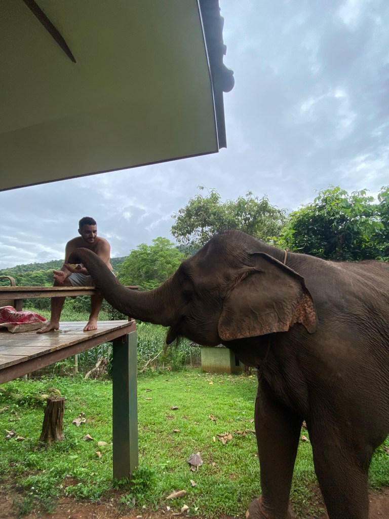 Side fact: Elefanten essen ohne Unterbrechung den ganzen Tag, sie schlafen nur 4h und essen dann weiter. Wenn ich den Mahut richtig verstanden habe trinken sie 150-200L am Tag, da können sich manche mal eine Scheibe von abschneiden.