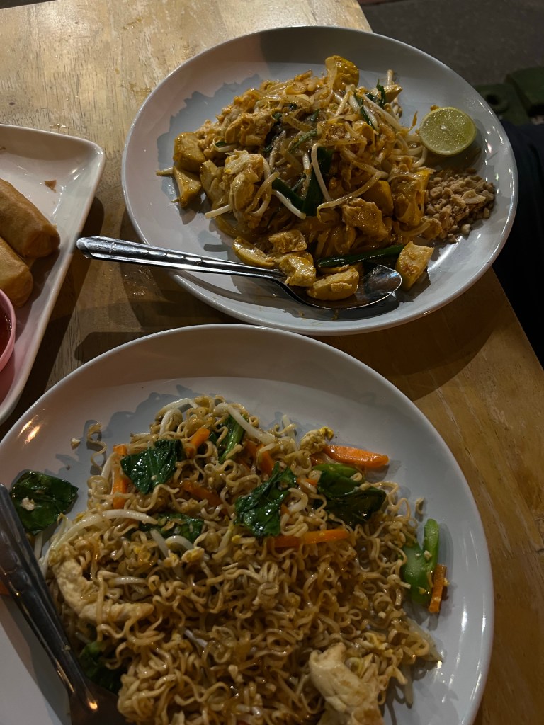 Dann ging es zum Abendessen, ein kleines Thai Restaurant, welches wir heute Mittag schon gesehen hatten wird es. Jeder Sitz ist besetzt, aber wir finden noch einen Platz.
