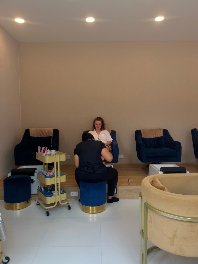 Auf dem Weg kommen wir an einem sehr schönen Spa vorbei, dieses bietet nicht nur Massagen an, sondern auch manicure und pedicure etc., was ein Mann meines Formats halt alles so braucht, also nichts wie rein da.