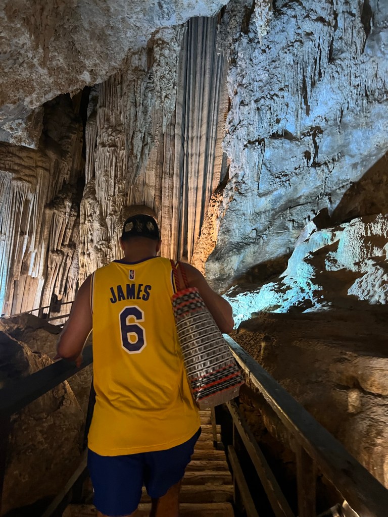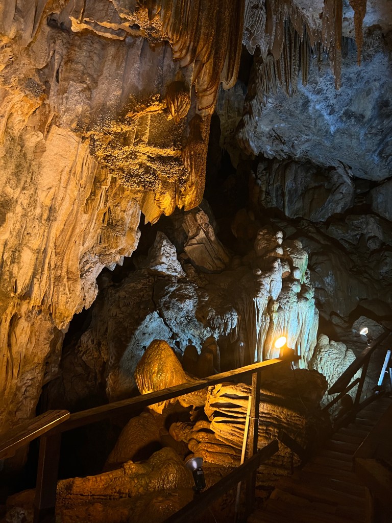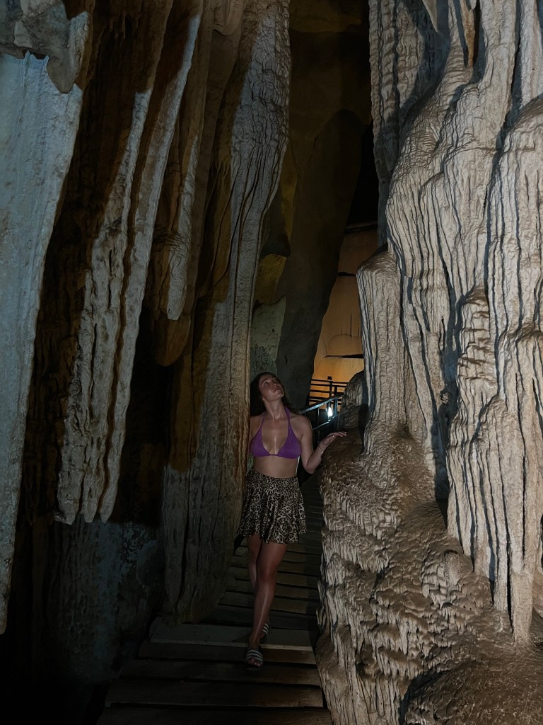 Auf dem Weg zum Strand kommen wir an einem Schild vorbei, darauf steht:„Diamond Cave 200m“, da müssen wir hin.