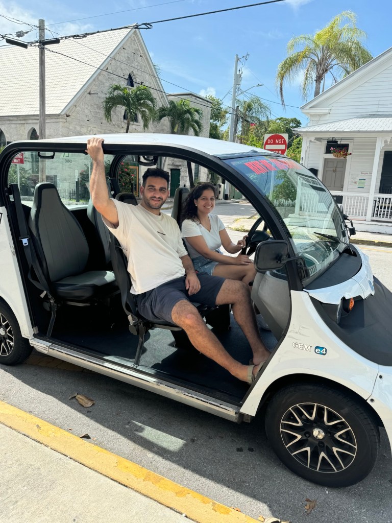 Wir haben uns ein Golfcart gemietet und fahren durch die Straßen und erkunden Key West.